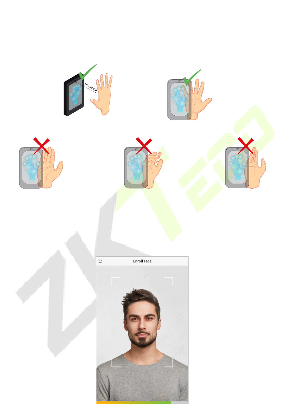 Place your palm in the palm multi-mode collection area, such that the palm is placed parallel to the device.