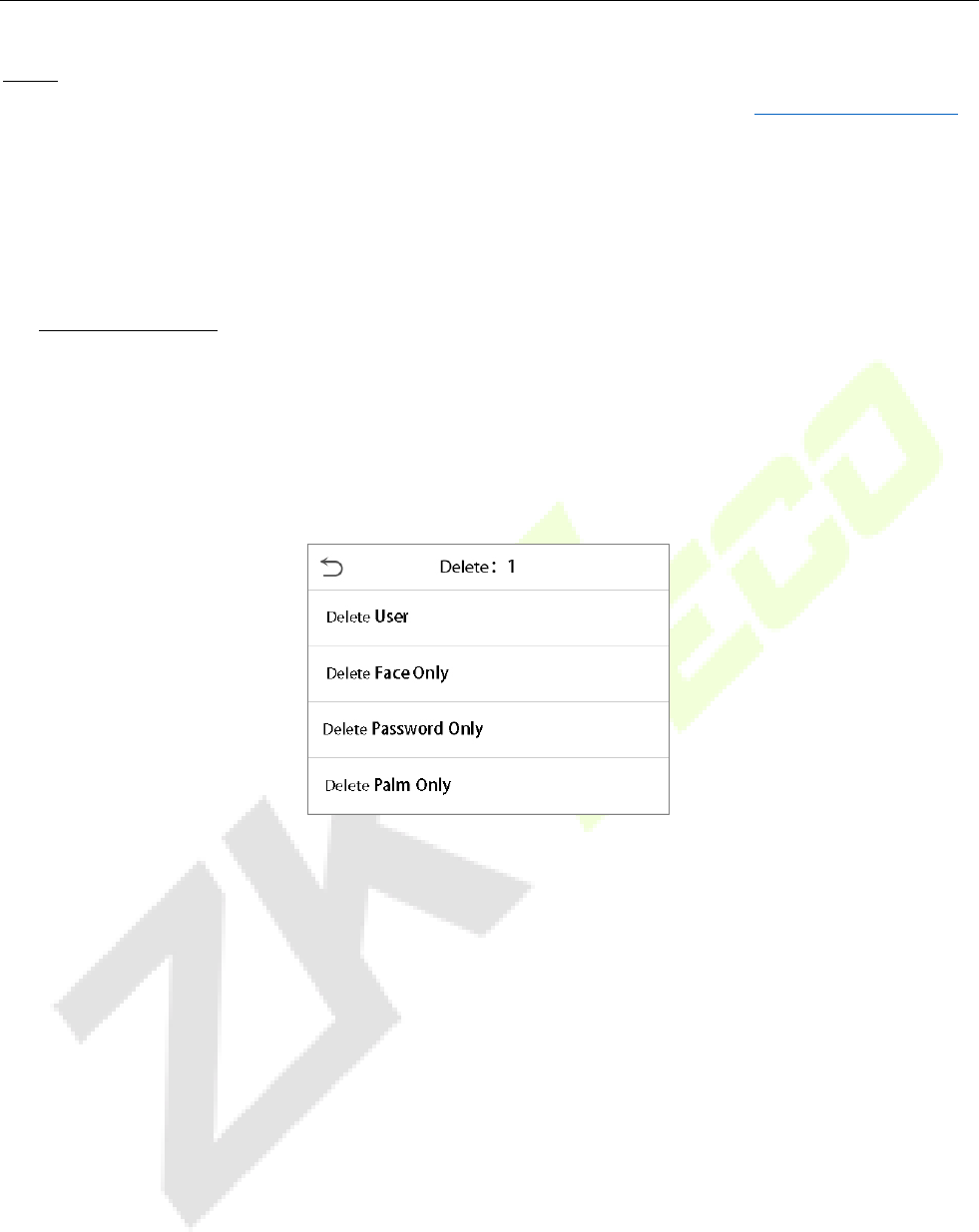 Delete Palm Only: Deletes the palm information of the selected user.