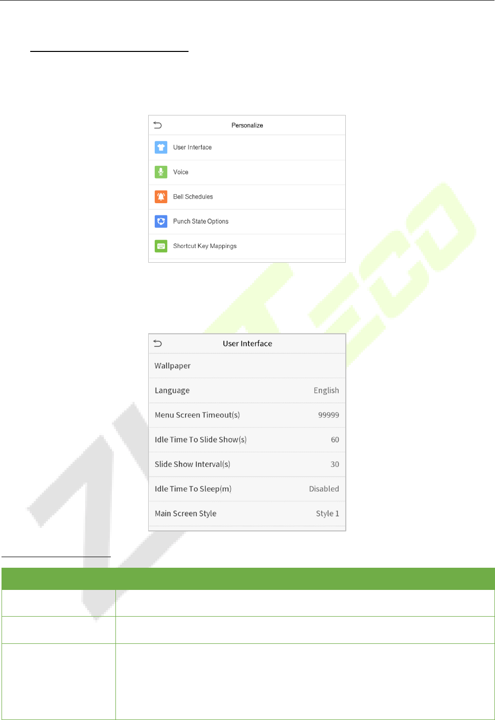 Tap Personalize on the Main Menu interface to customize interface settings, voice, bell, punch state