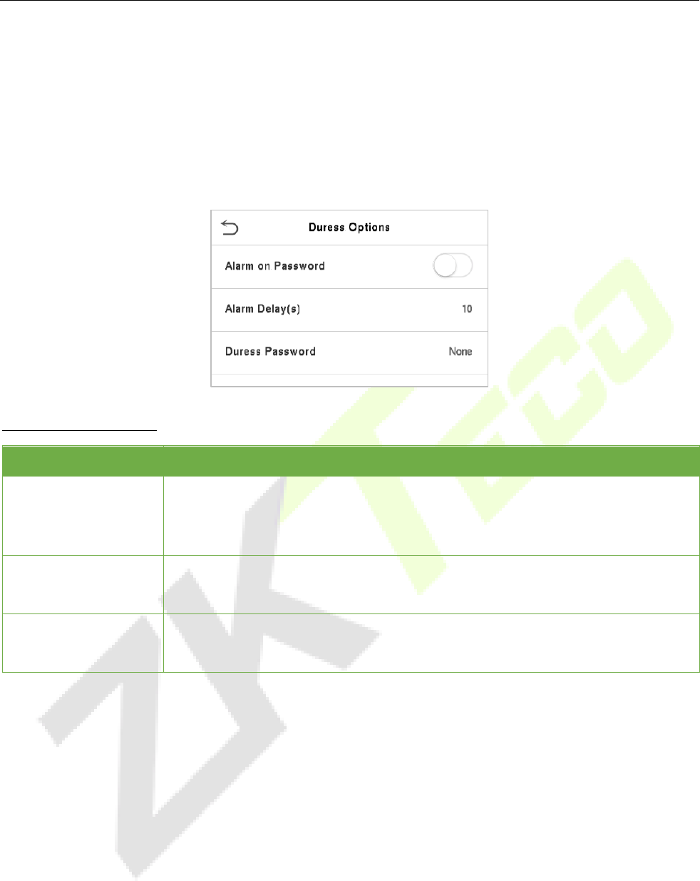 he/she is under coercion and authenticates using duress verification, the device will unlock the door as