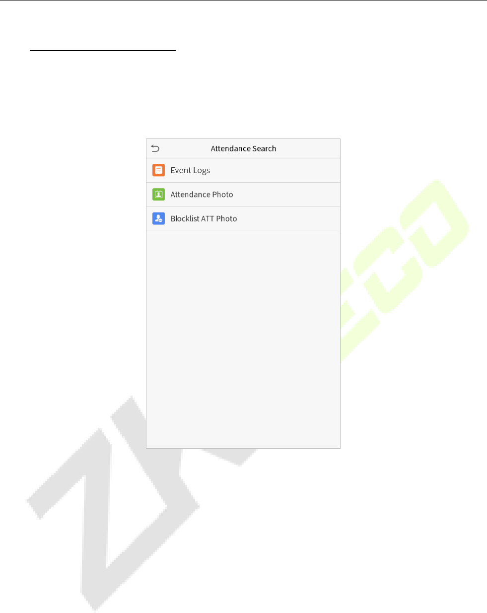 Click Attendance Search on the Main Menu interface to search for the required Access/Attendance log.