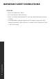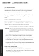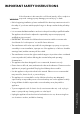 IMPORTANT SAFETY INSTRUCTIONS ELECTRICAL CONNECTION Improper use of the grounded plug can increase the risk of electrical shock. If the power cord is damaged, have it replaced by a qualified WARNING electrician or authorized service provider. • This appliance must be properly grounded for your safety. The power cord provided with this unit is equipped with a NEMA 5-15 plug that mates with standard NEMA 5-15 wall outlets to minimize the possibility of electrical shock.