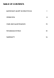 TABLE OF CONTENTS IMPORTANT SAFETY INSTRUCTIONS 1 OPERATION 8 CARE AND MAINTENANCE 10 TROUBLESHOOTING 12 WARRANTY 14