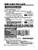 HOW TO SET THE CLOCK 0.9: If the current time is PM1:01 but displays PM12:58. | 1 Insert the Power Plug into an electrical outlet. The current time appears on the Display. 2 Press the TIME SETTING button set the current time on the Display. The time display will start to blink. Adjusting time A button: Each press advances the time In 1-minute Increments. . / W button: Each press moves the clock in reverse by 1 minute.
