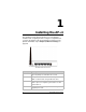 1 Installing the AP+4 This chapter provides basic instructions for connecting the hardware and configuring the AP+4 using the Setup Wizard. If you have already done this by following the instructions in the printed Quick Start, skip to Chapter 2, Wireless Settings, on page 20. AP+4 Back Panel Connectors 6 Connector Description RESET To reset the modem to its factory settings, insert a paper clip and press and hold for 10 seconds.