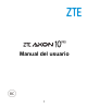 Acerca de este manual Gracias por elegir este dispositivo móvil ZTE. Para mantener tu dispositivo en las mejores condiciones, lee este manual y guárdalo para futuras consultas. Copyright Copyright © 2019 ZTE CORPORATION Todos los derechos reservados. Ninguna parte de esta publicación se podrá citar, reproducir, traducir o utilizar de cualquier otra forma o por otros medios (electrónicos o mecánicos), incluso fotocopiar y microfilmar, sin el consentimiento previo por escrito de ZTE Corporation.