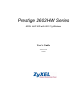 Prestige 2602HW Series User’s Guide Preface Congratulations on your purchase of the Prestige 2602HW Series ADSL VoIP IAD with 802.11g Wireless. Note: Register your product online to receive e-mail notices of firmware upgrades and information at www.zyxel.com for global products, or at www.us.zyxel.com for North American products. Your Prestige is easy to install and configure.