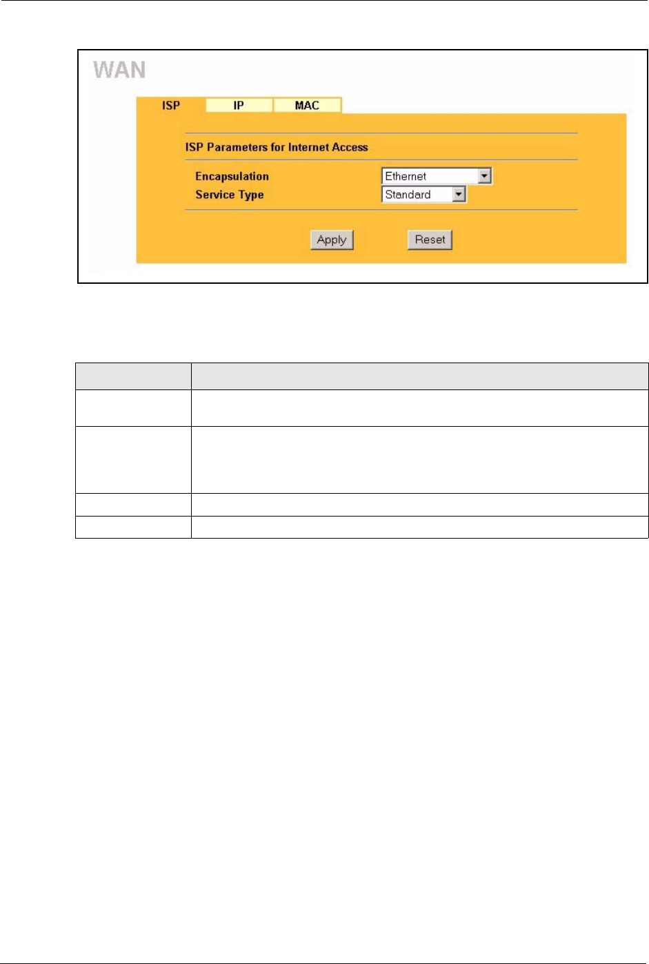 Encapsulation You must choose the Ethernet option when the WAN port is used as a regular