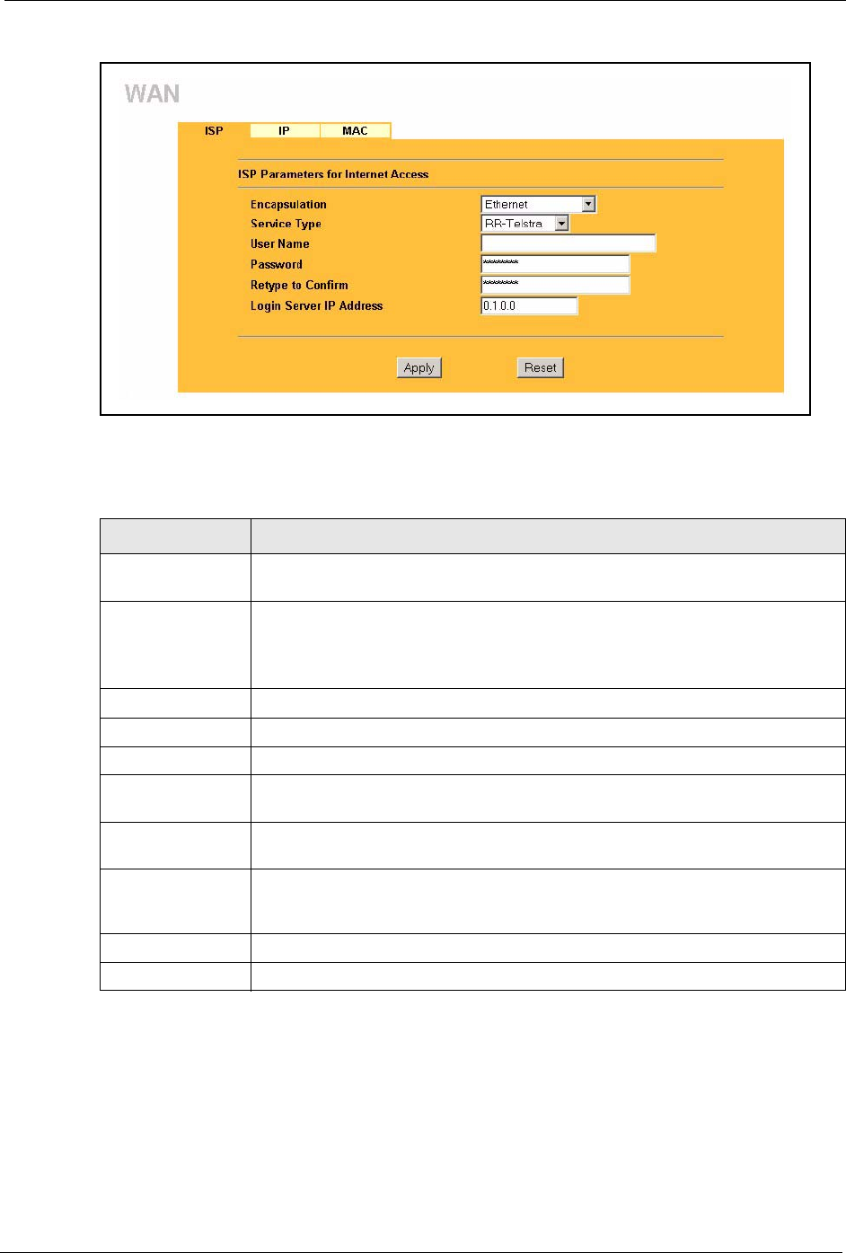 Encapsulation You must choose the Ethernet option when the WAN port is used as a regular