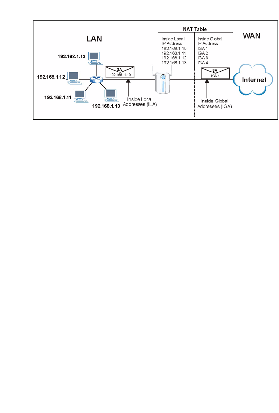 LANs using IP Alias) behind the ZyAIR can communicate with three distinct WAN networks.