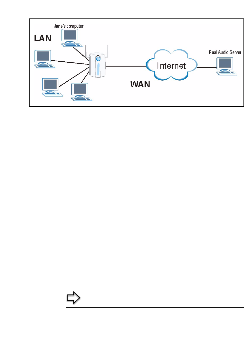 2 Port 7070 is a “trigger” port and causes the ZyAIR to record Jane’s computer IP address.