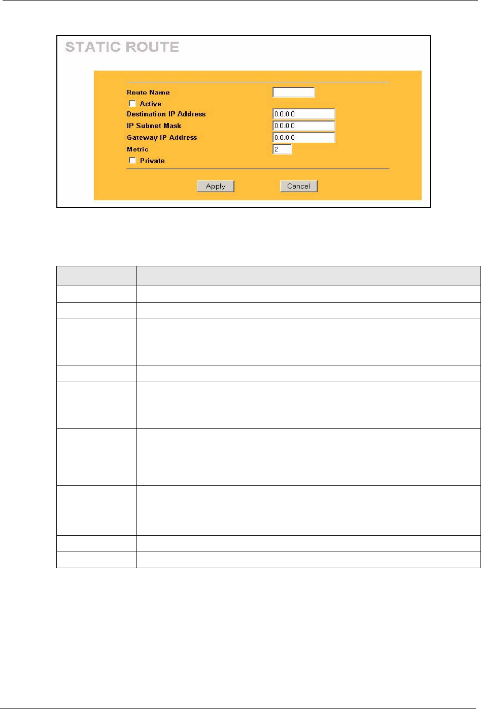 Route Name Enter the name of the IP static route. Leave this field blank to delete this static route.