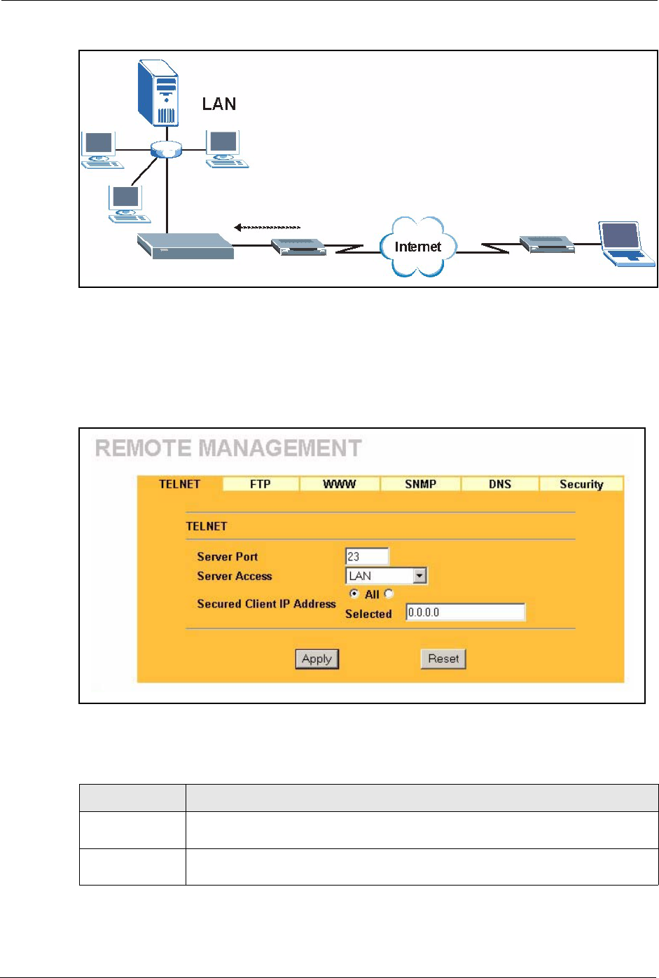 Click REMOTE MGMT and the TELNET tab to display the screen as shown.