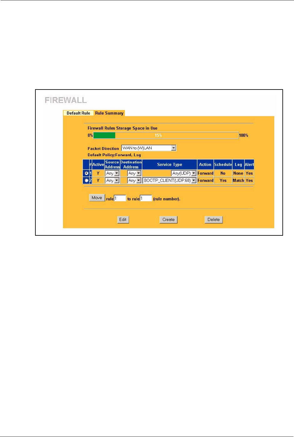 1 Click the FIREWALL link and then the Rule Summary tab. Select WA N t o L A N from