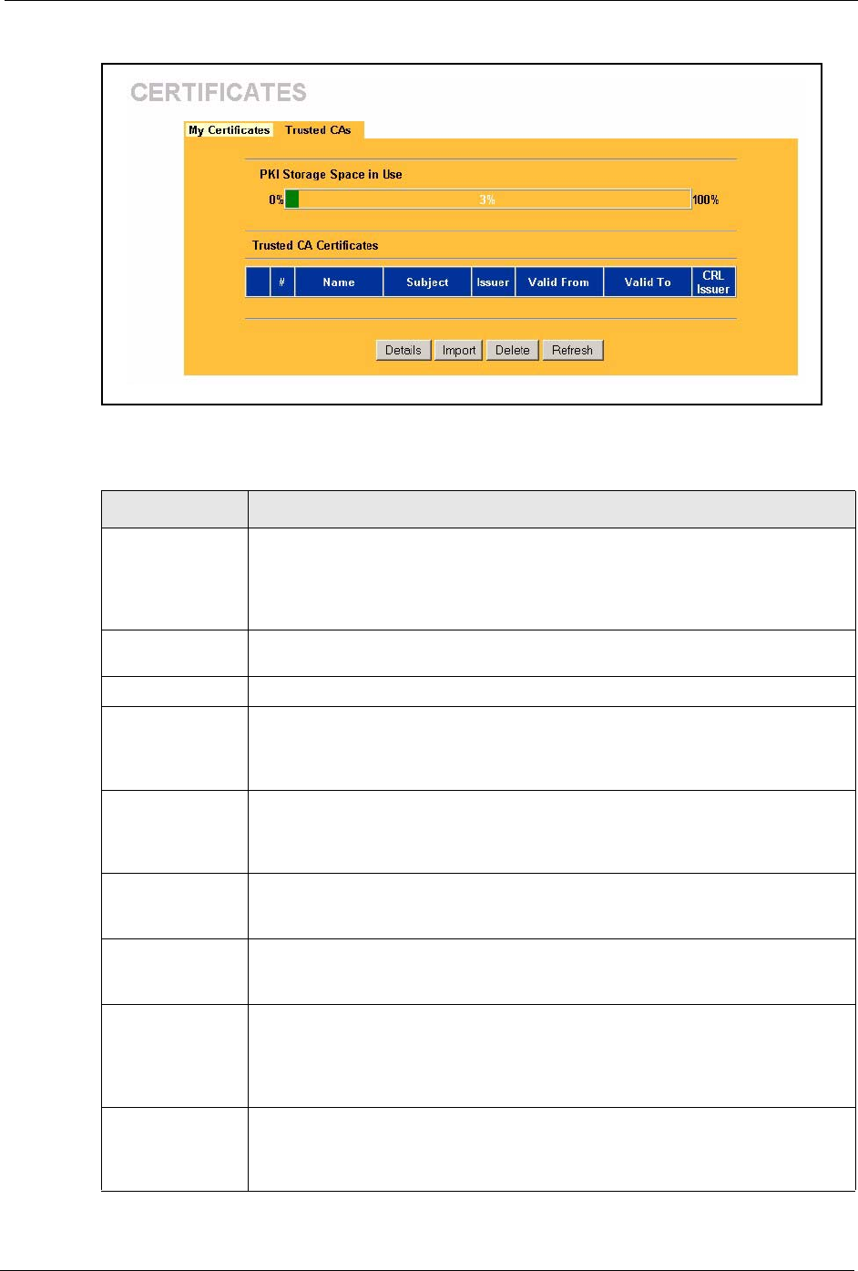 This bar displays the percentage of the ZyAIR’s PKI storage space that is currently