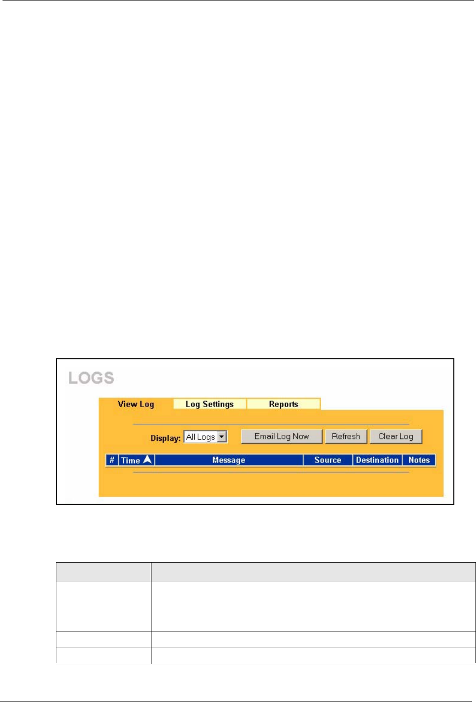 ZyAIR’s logs. Refer to the appendix for example log message explanations.