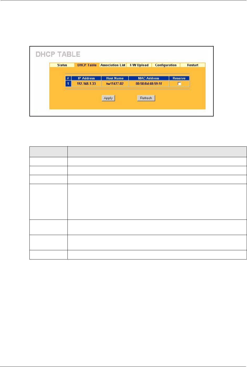 Reserve Select this check box to have the ZyAIR always assign this IP address to this MAC