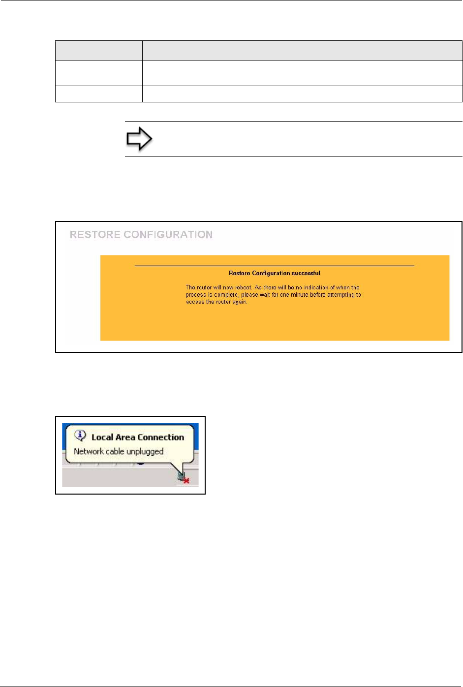 After you see a “restore configuration successful” screen, you must then wait one minute