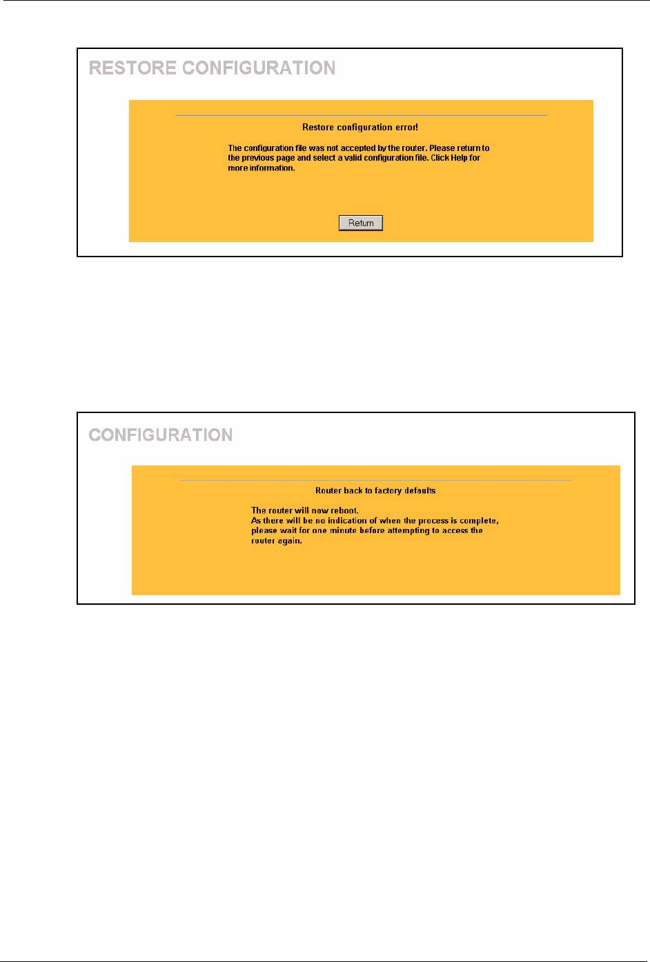 returns the ZyAIR to its factory defaults as shown on the screen. The following warning screen