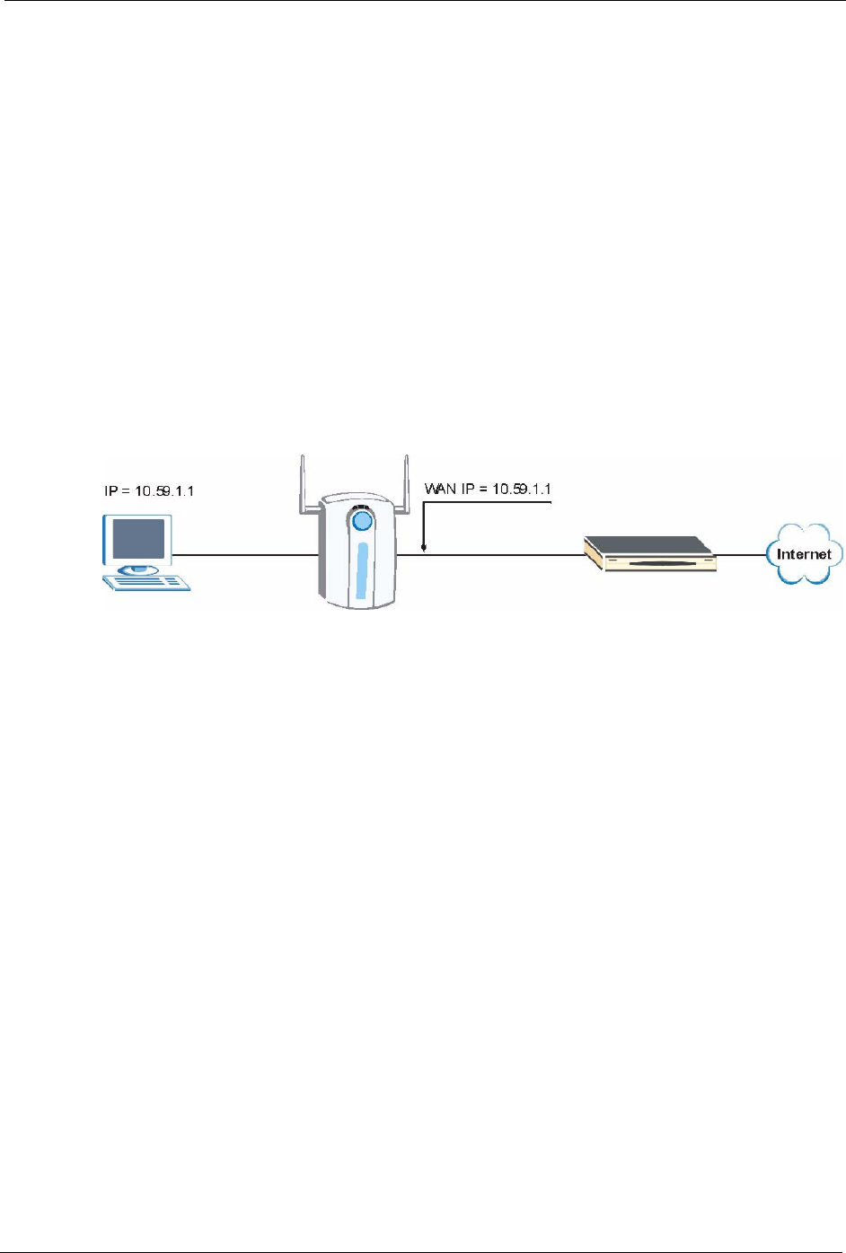 The following figure shows an example where the ZyAIR is using a WAN IP address that is