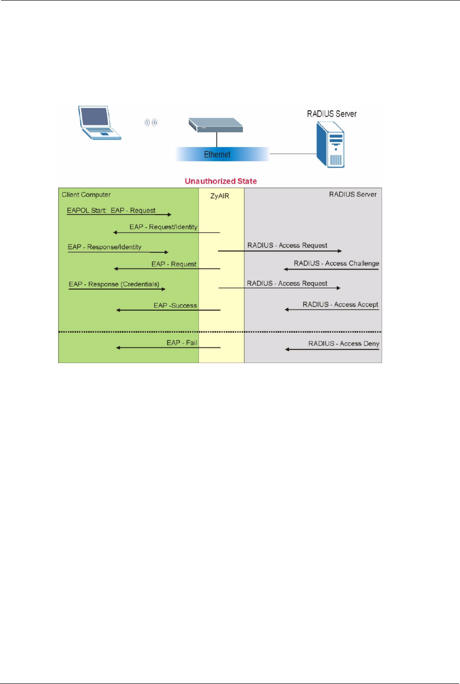 The ZyAIR authenticates in two phases when it is acting as a RADIUS server: