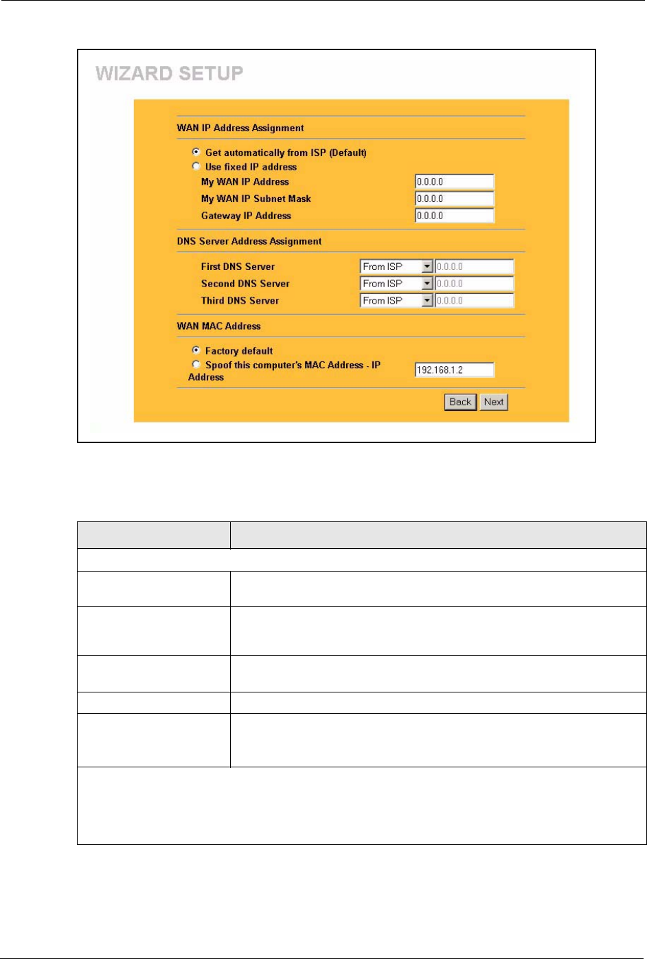 Table 12 Wizard 5: WAN Setup