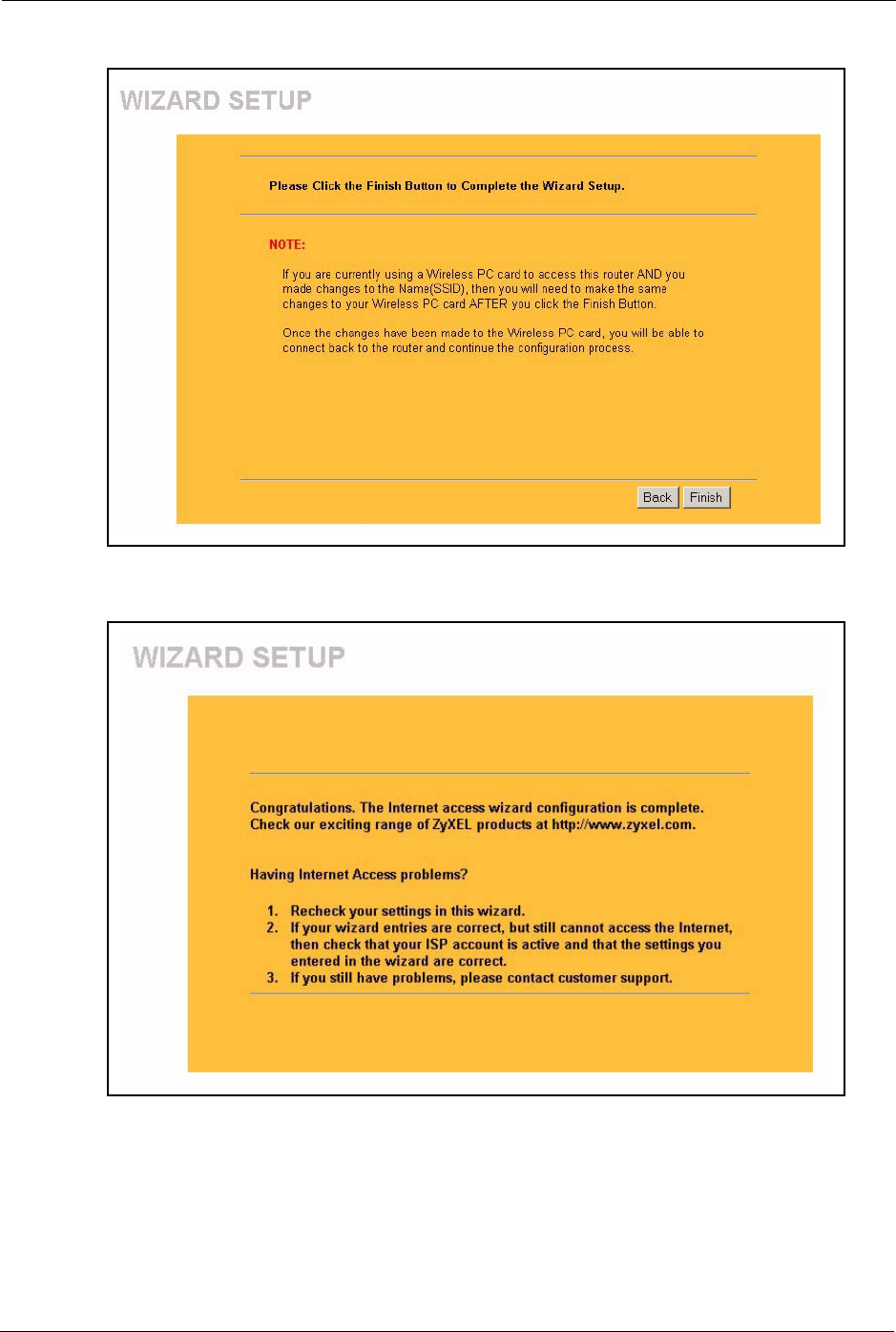 Well done! You have successfully set up the ZyAIR. A congratulations screen displays some