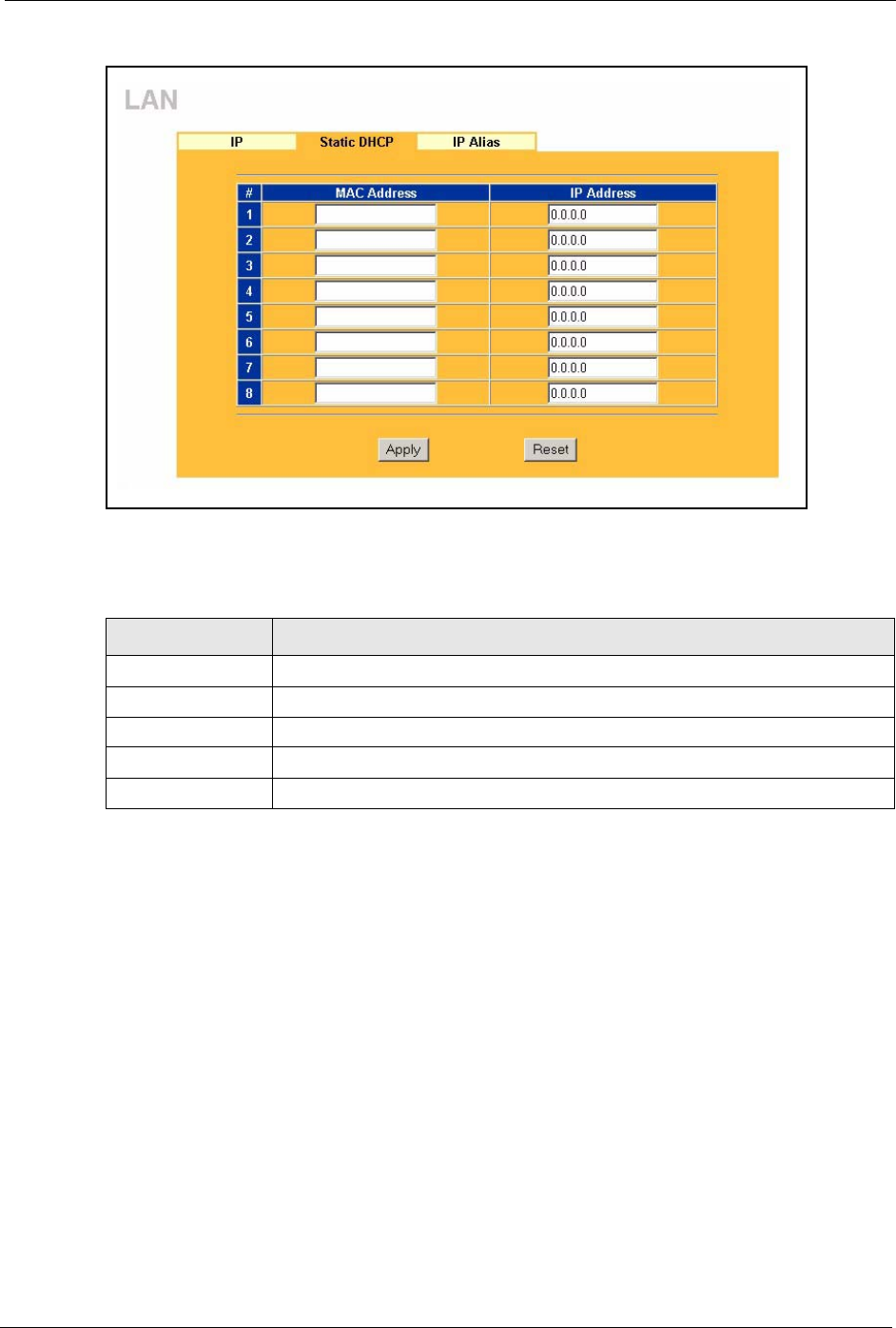 To change your ZyAIR’s IP Alias settings, click LAN, then the IP Alias tab. The screen