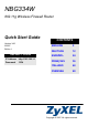 NBG334W 802.11g Wireless Firewall Router Quick Start Guide Version 3.60 6/2007 Edition 1 DEFAULT LOGIN IP Address http://192.168.1.1 Password 1234 CONTENTS ENGLISH 2 DEUTSCH 12 ESPAÑOL 24 FRANÇAIS 36 ITALIANO 48 SVENSKA 60 Copyright © 2007. All rights reserved.