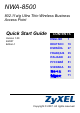 NWA-8500 802.11a/g Ultra Thin Wireless Business Access Point Quick Start Guide Version 1.00 6/2007 Edition 1 CONTENTS ENGLISH 1 DEUTSCH 19 ESPAÑOL 27 FRANÇAIS 35 ITALIANO 43 РУССКИЙ 51 SVENSKA 59 简体中文 65 繁體中文 71 Copyright © 2007.