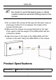 繁體中文 " 在鑽螺絲孔時,請小心勿損傷到牆內的管線或纜 線。 3 不要把螺絲釘全部旋入牆中, 螺絲頭與牆面之間須留一小段 大約 0.5 cm 的空隙。 4 確認螺絲釘已緊密的固定在牆上。它們必須支撐住 NWA8500 及連接纜線的重量。 5 使 NWA-8500 背面的孔洞對齊牆面上的螺絲釘。將 NWA8500 掛在螺絲釘上。 產品規格 尺寸 198.5 (W) x 138.5 (D) x 47.