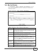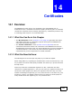 •The My Certificate screens (Section 14.2 on page 175) generate and export