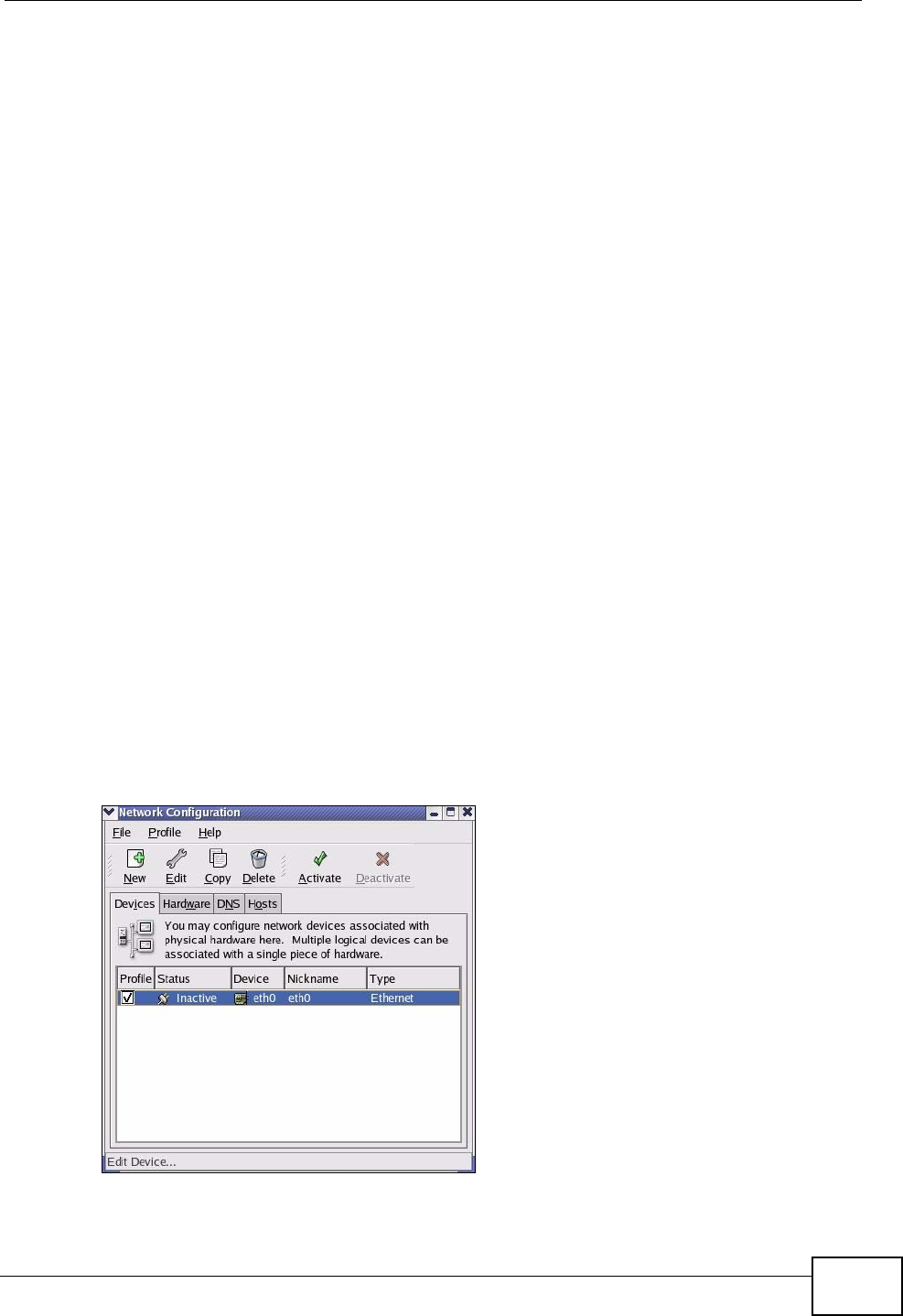 Figure 47 Red Hat 9.0: KDE: Network Configuration: Devices