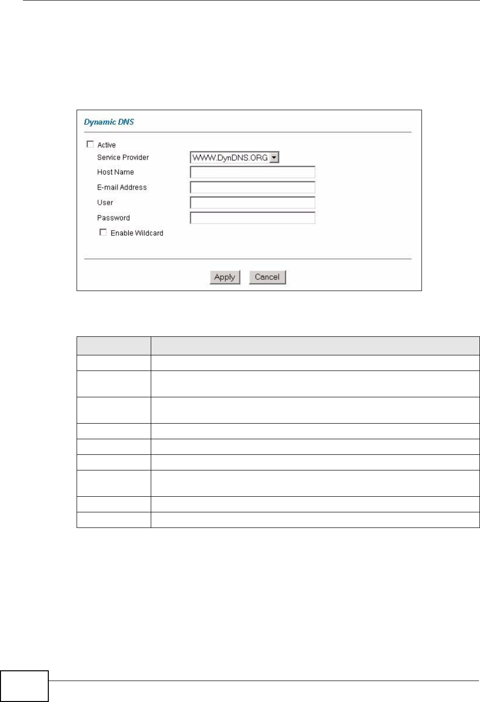 Host Names Type the domain name assigned to your ZyXEL Device by your Dynamic