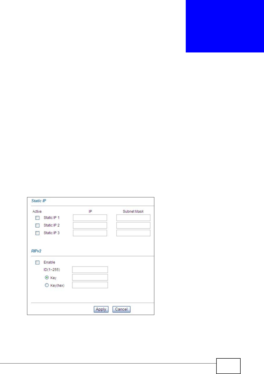 addresses and configure the RIPv2 settings. See the Section 4.3 on page 41 for an
