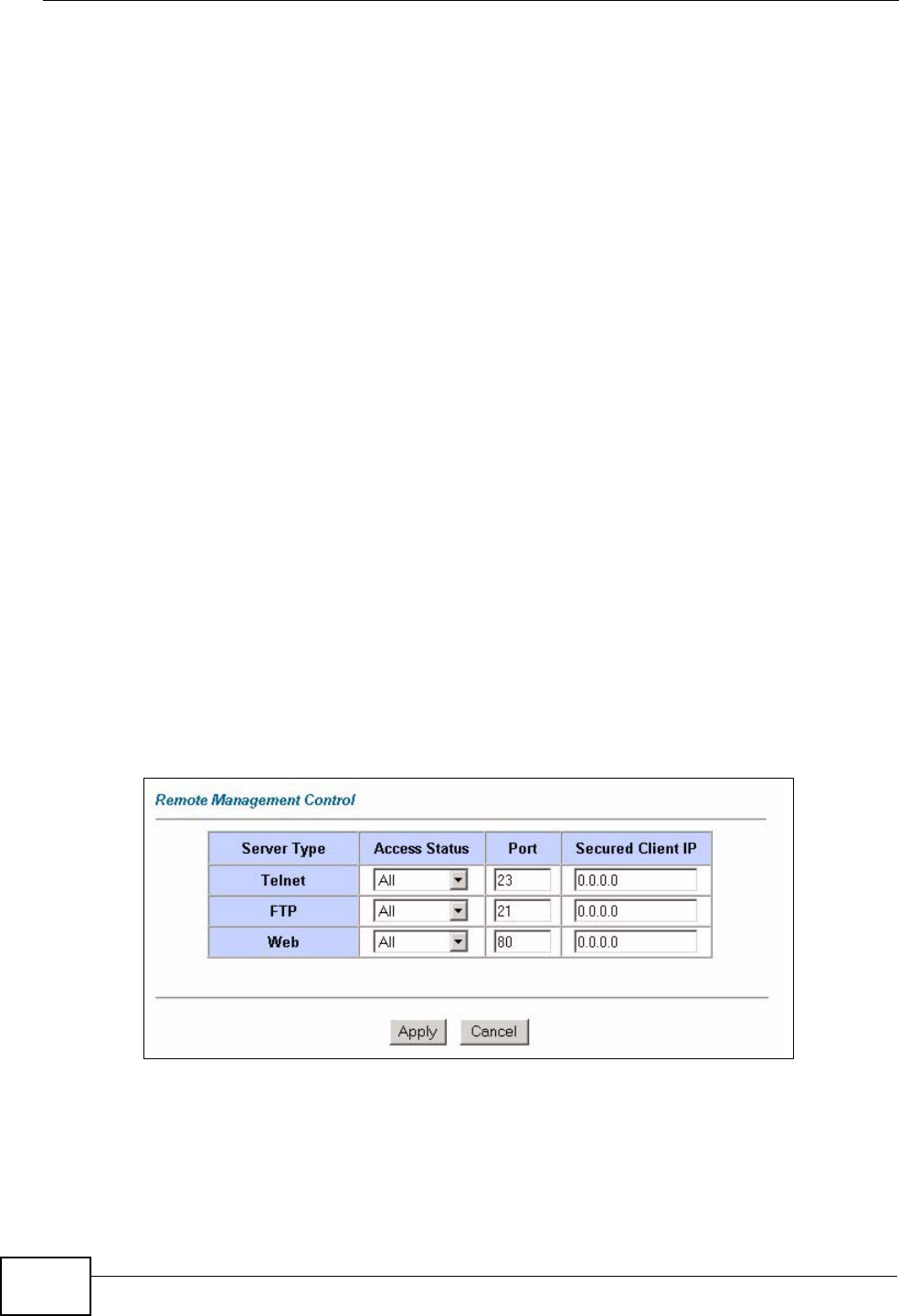 Use the Remote Management screen (Section 9.2 on page 72) to configure