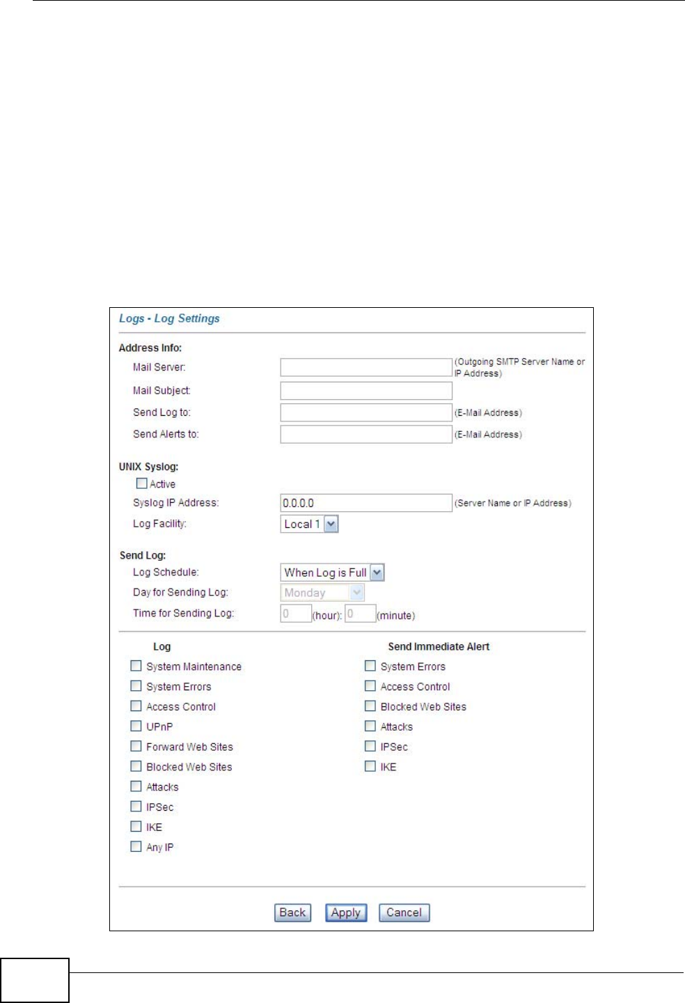 logs; the schedule for when the ZyXEL Device is to send the logs and which logs
