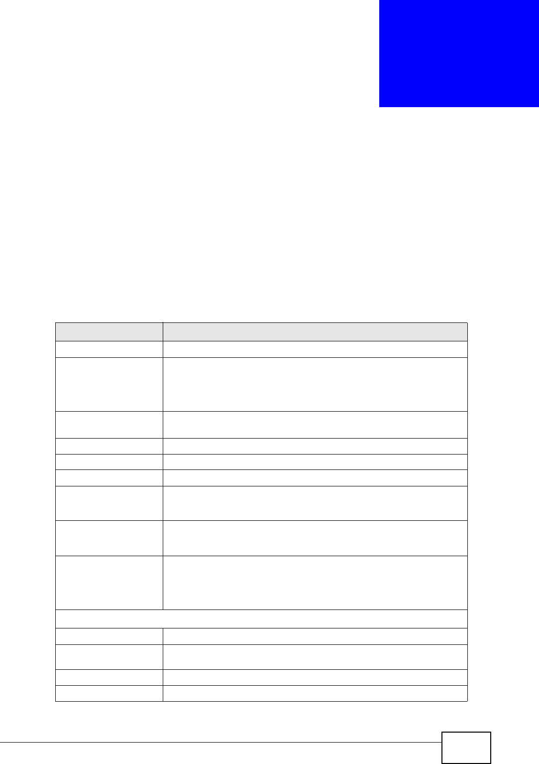 The following tables summarize the ZyXEL Device’s hardware and firmware