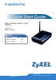 P-660HN-F1A 802.11n Wireless ADSL2+ 4-port Gateway Version 3.70 Edition 1, 01/2010 DEFAULT LOGIN DETAILS IP Address: http://192.168.1.1 Admin Password: 1234 User Password: user www.zyxel.