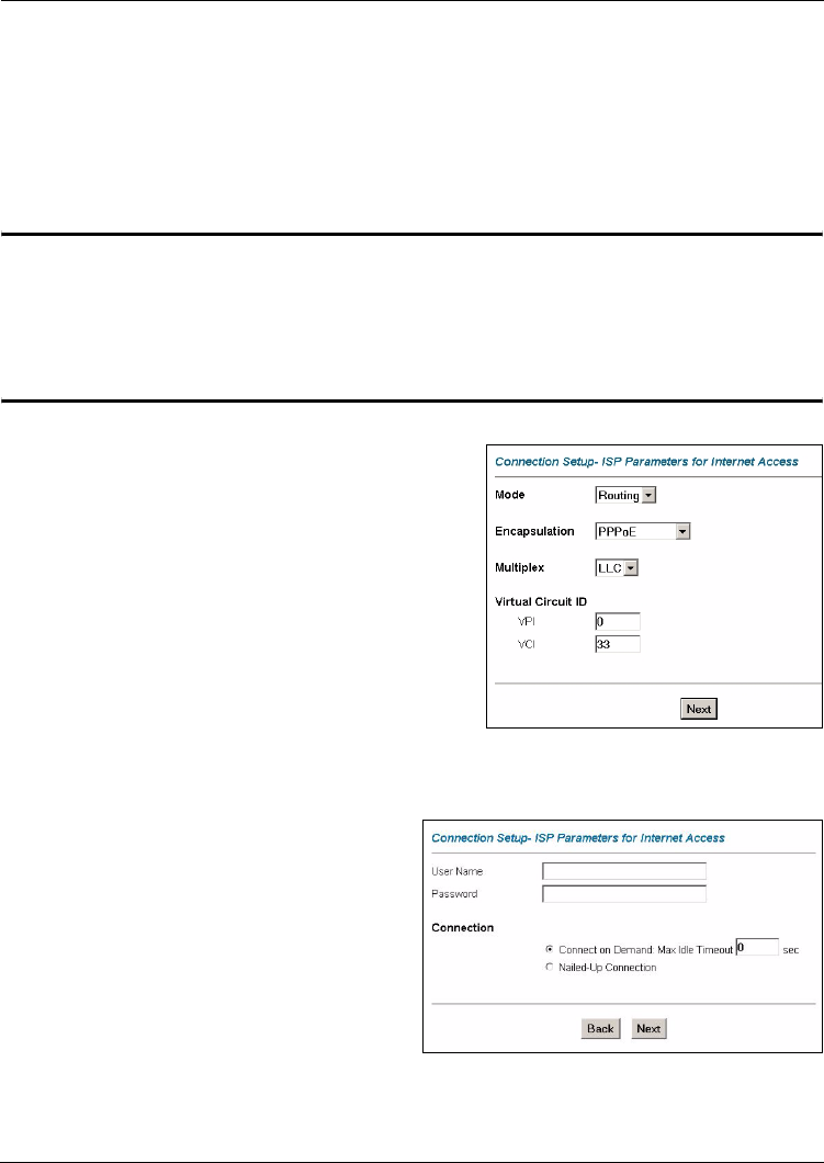 • If you selected Bridge and RFC 1483 in the previous screen, go to step 3 in this section.