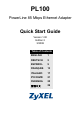 PL100 PowerLine 85 Mbps Ethernet Adapter Quick Start Guide Version 1.