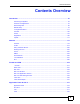 Contents Overview Contents Overview Introduction ............................................................................................................................ 51 Introducing the ZyWALL ............................................................................................................ 53 Features and Applications ......................................................................................................... 57 Web Configurator ...............................................