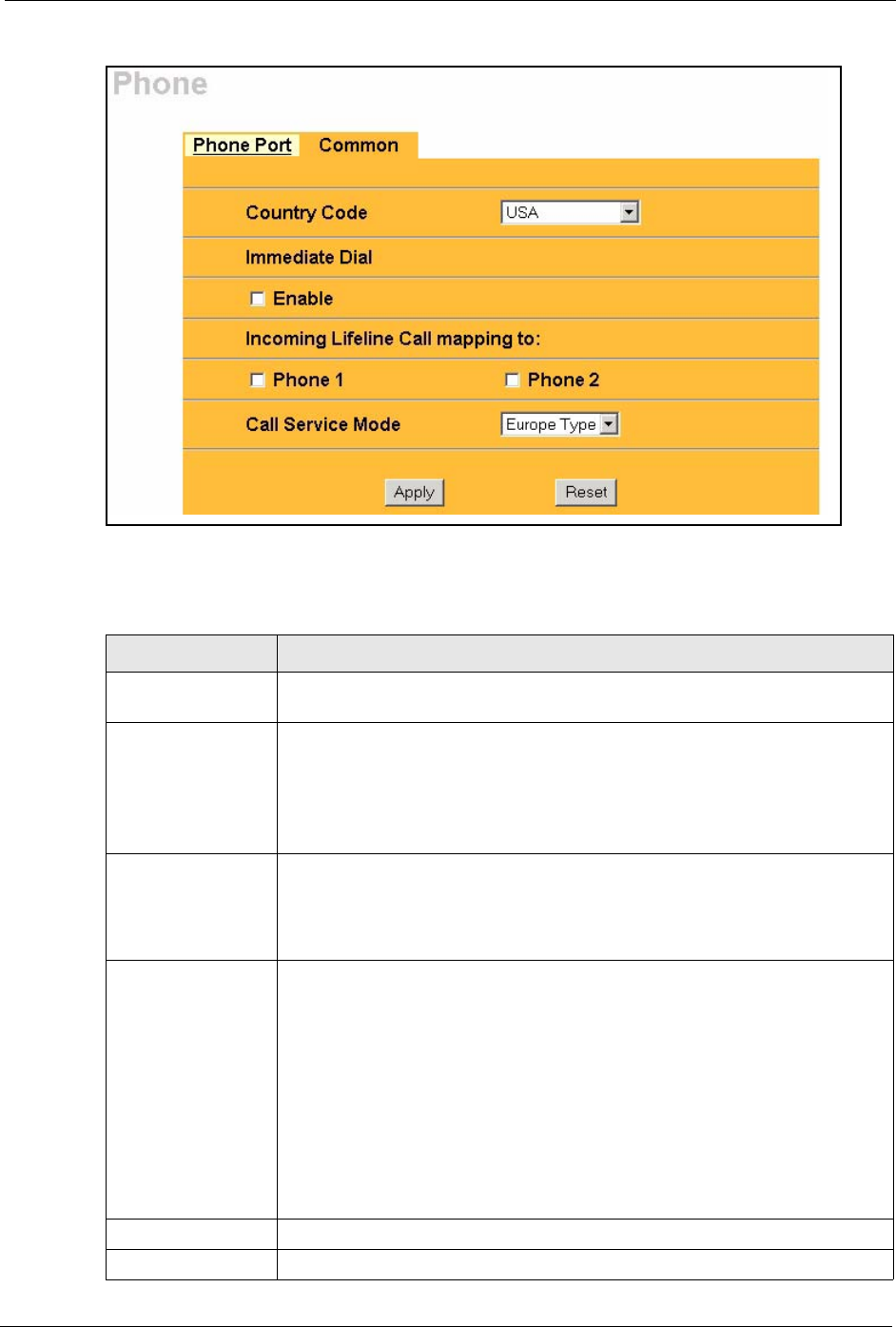 Call Service Mode Use this field to set how the Prestige handles supplementary phone services