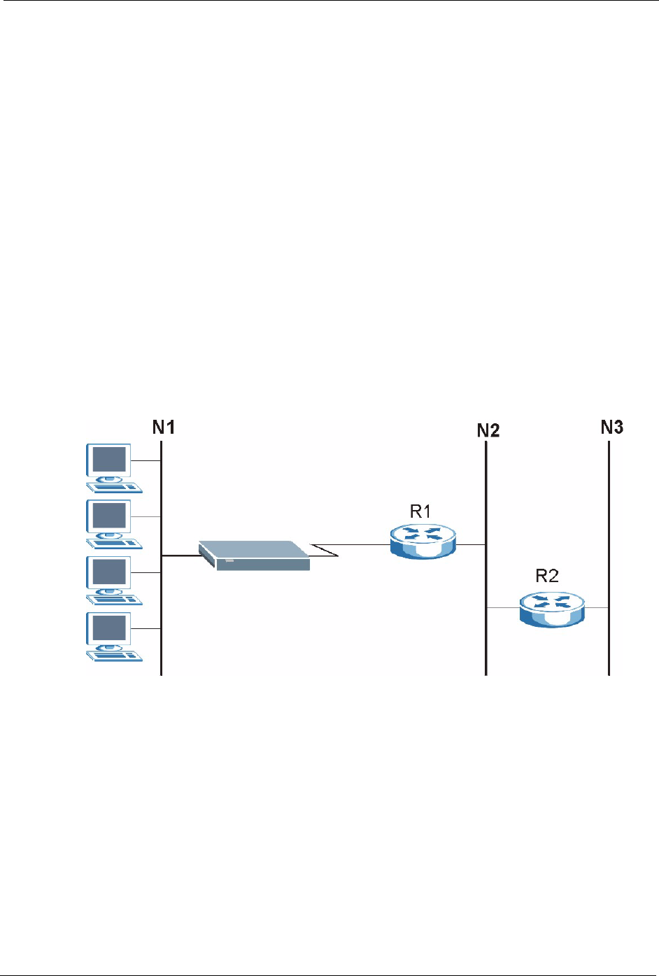 network N2 in the following figure through remote node Router 1. However, the Prestige is