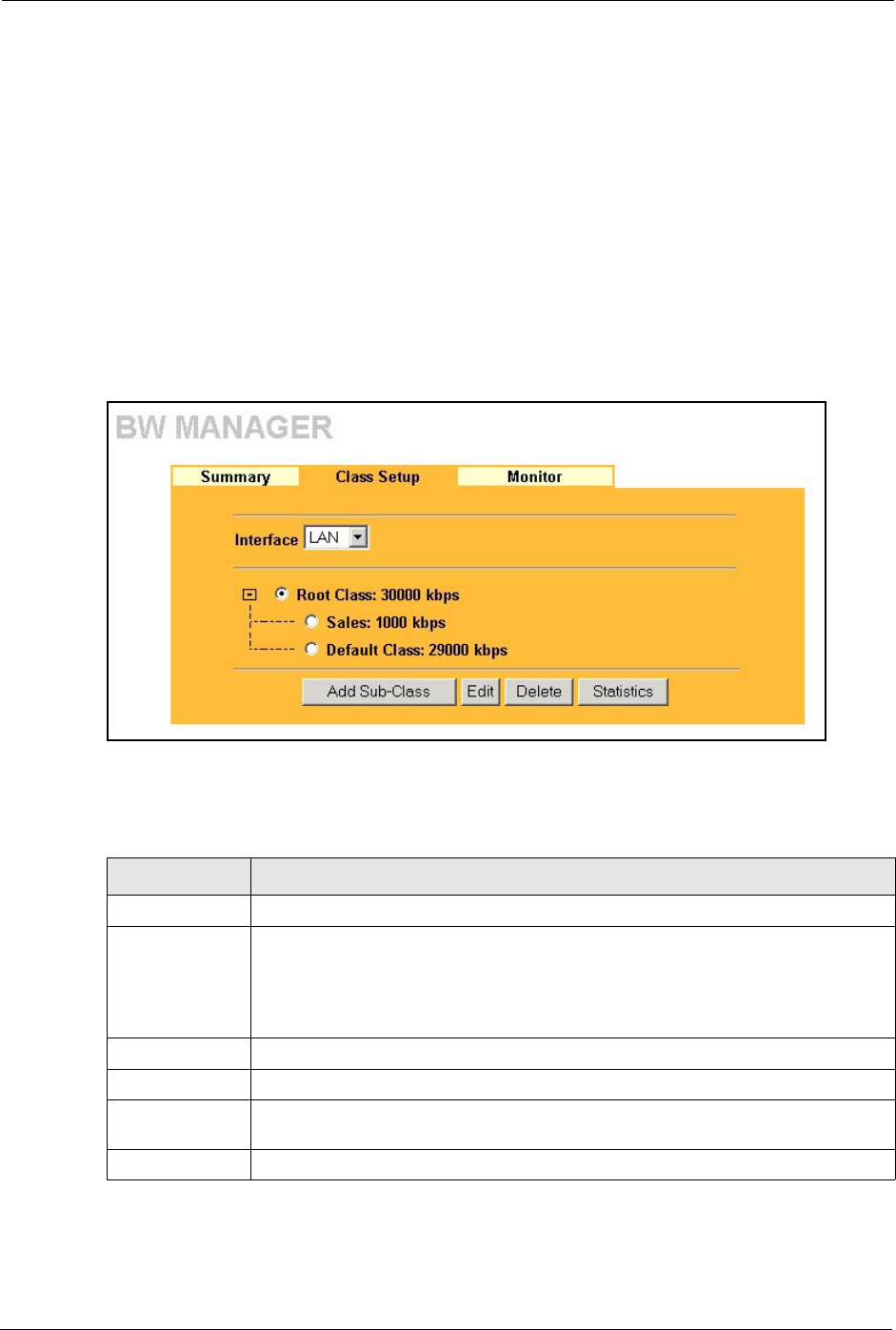 Figure 88 Bandwidth Manager: Class Setup