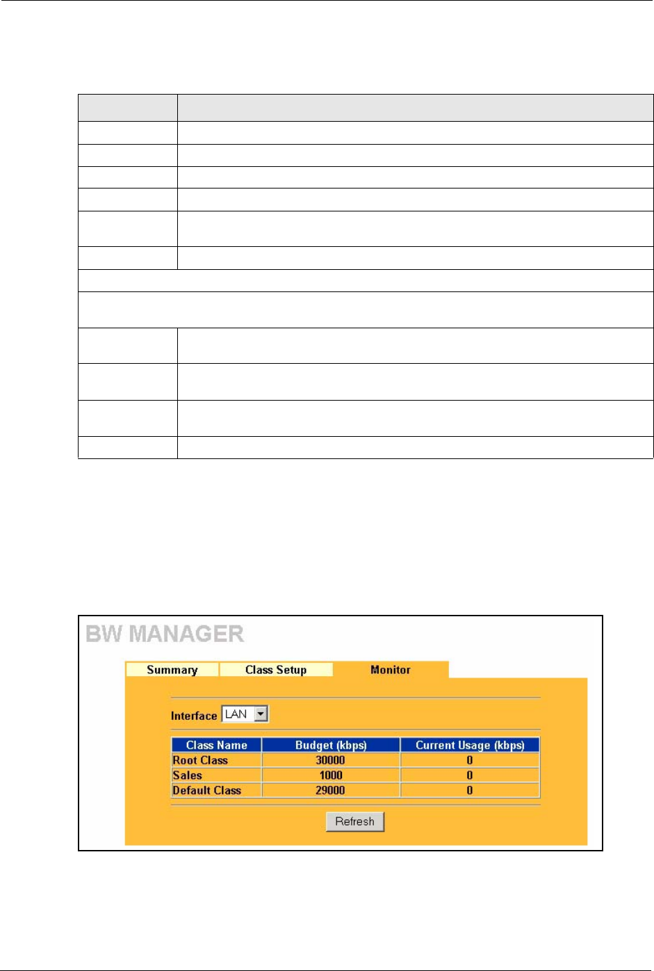 Clear Counter Click Clear Counter to clear all of the bandwidth management statistics.