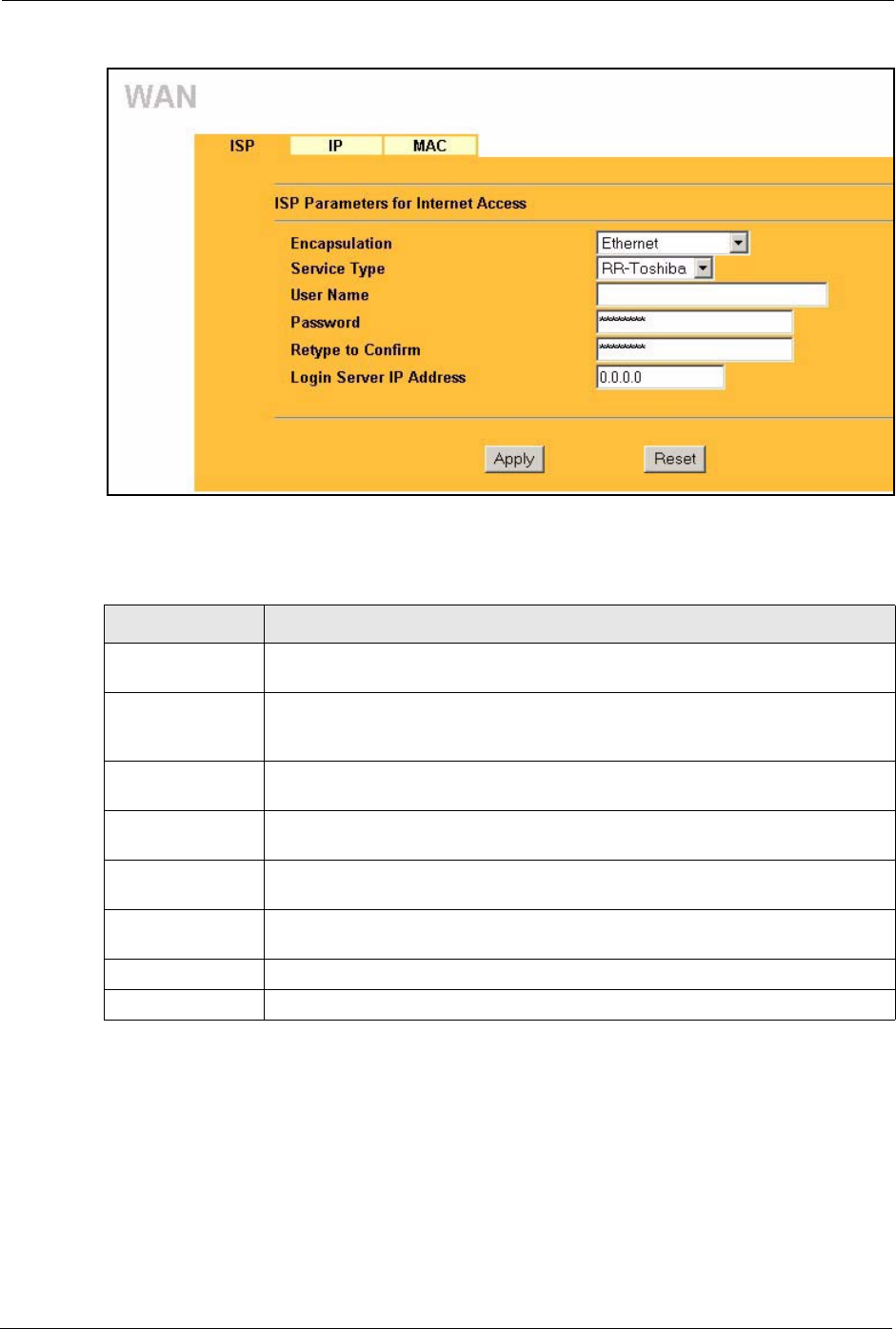 Encapsulation You must choose the Ethernet option when the WAN port is used as a regular
