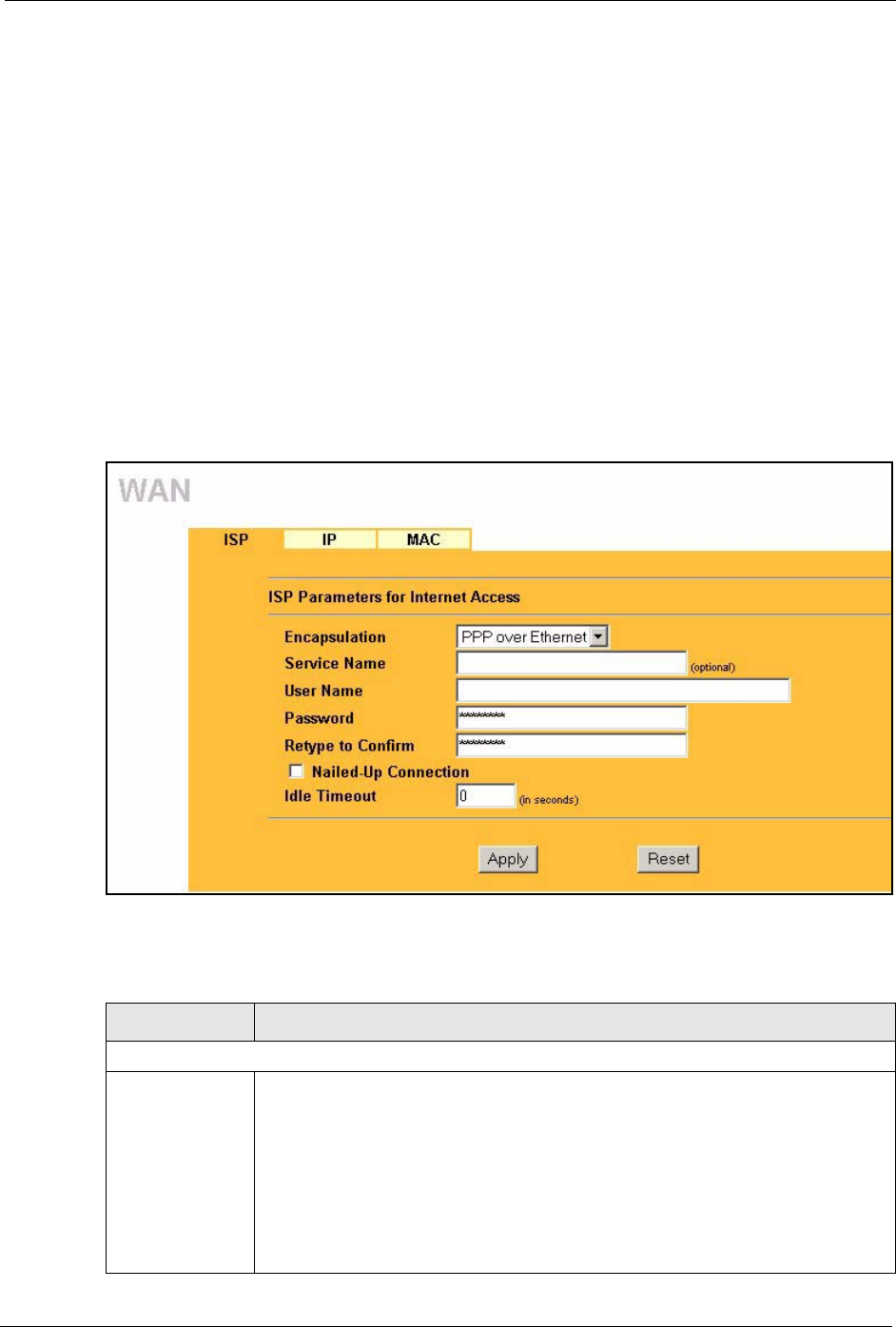 Encapsulation The PPP over Ethernet choice is for a dial-up connection using PPPoE. The