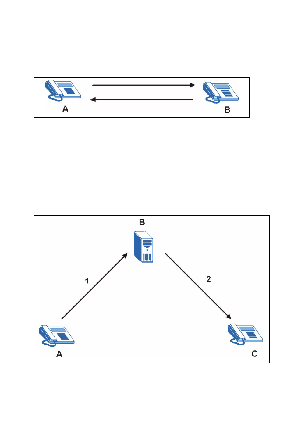 figure, either A or B can act as a SIP user agent client to initiate a call. A and B can also both