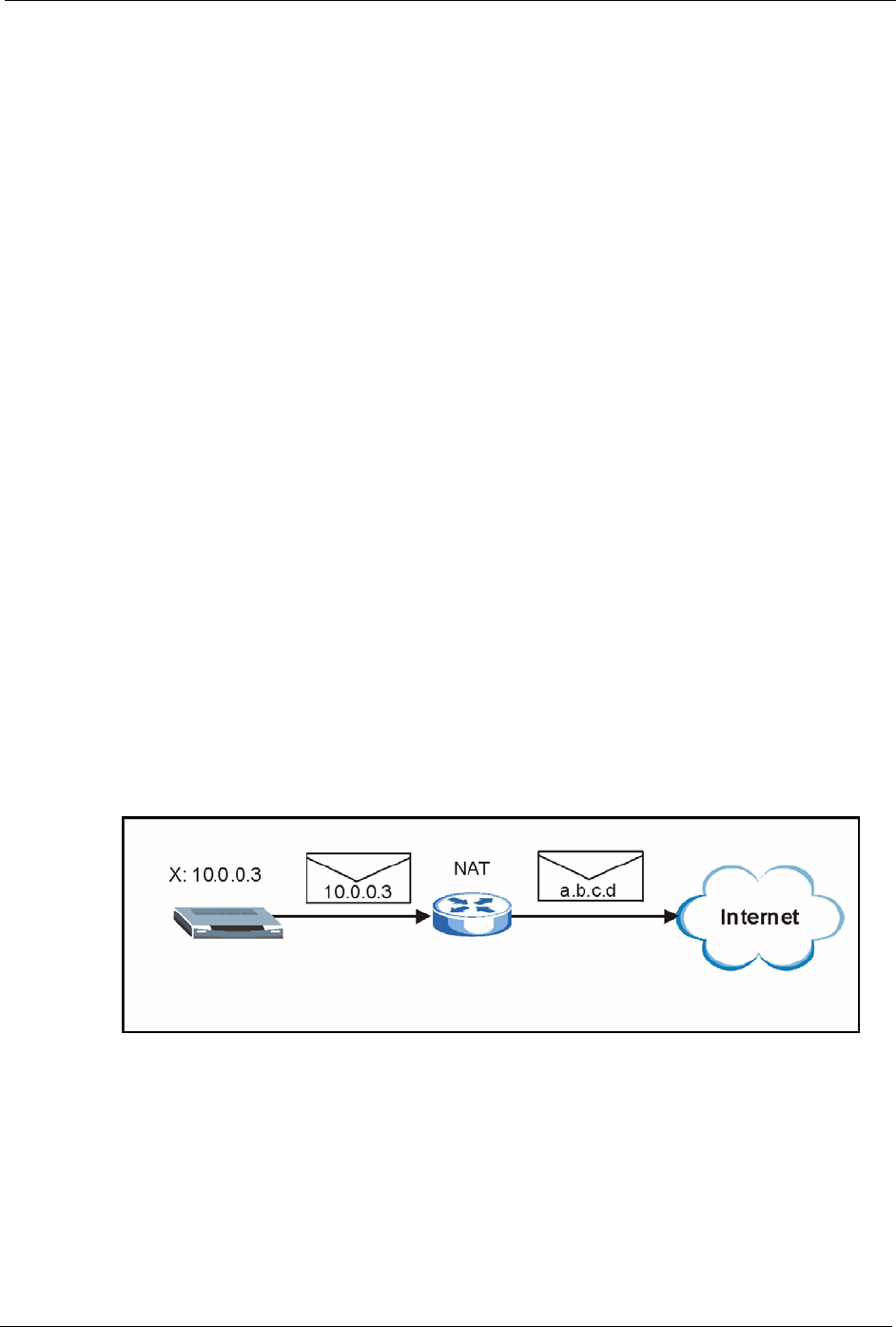 See the following figure. The Prestige (X) sends packets to the Internet. The Prestige’s IP